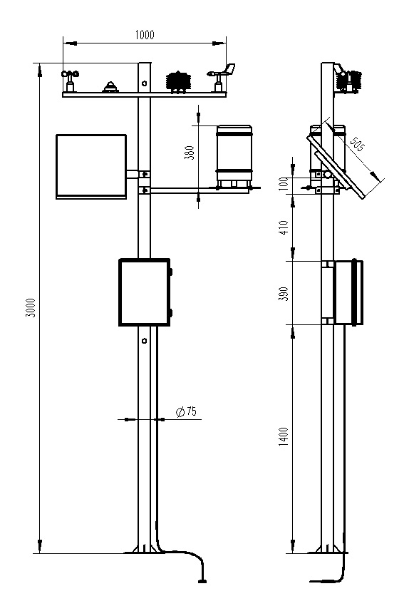 由氣象傳感器、氣象數據采集儀、電源系統、防護箱和氣象觀測支架、通訊模塊等部分構成。能夠用于對風速、風向、雨量、空氣溫度、空氣濕度、光照強度、土壤溫度、土壤濕度、蒸發量、大氣壓力等十幾個氣象要素進行全天候現場監測。可以通過專業配套的數據采集儀與軟件平臺進行連接,將數據傳輸到軟件平臺數據庫中,用于統計分析和處理,廣泛應用于工農業生產、旅游、科研、氣象等城市環境監測。